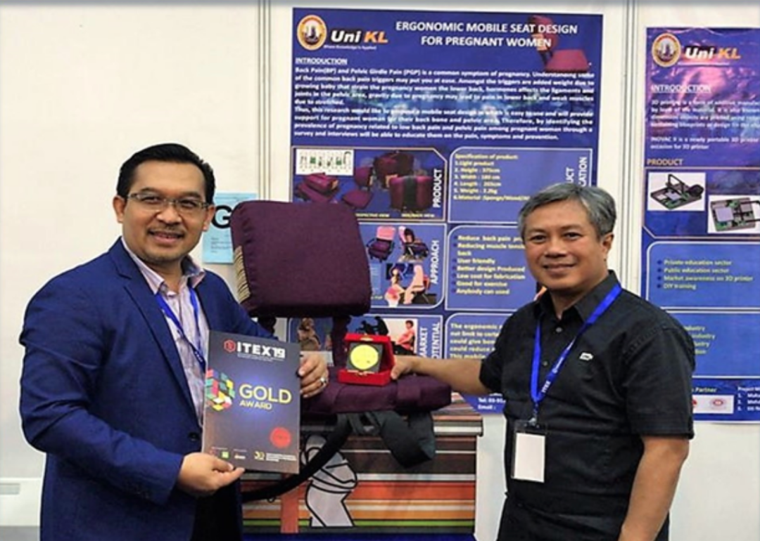 A total 16 projects were submitted by UniKL in the exhibition and of which 11 projects won gold medals whilst four received silver medals and one contented with a bronze. This is the second time UniKL scored high grades in an ITEX exhibition with 68.75 percent success rate – 11 out of 16 projects won gold medals. In 2017 and 2018 ITEX exhibitions, UniKL posted a 100 percent success rate by claiming medals in every of the 16 products. Dr. Norhisham Seyajah of UniKL Malaysia Italy Design Institute (MIDI) won gold medals in two different projects namely Stool and Ergonomic Mobile Seat Design for Pregnant Women, respectively.